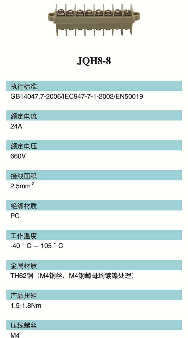 JQH8系列繼電保護(hù)端子,是為國內(nèi)外繼電保護(hù)裝置而開發(fā)的電流端子;主要應(yīng)用于各類電力,電子,儀器裝置、繼電保護(hù)裝置等機(jī)箱穿墻類型電路進(jìn)出線連接,適用導(dǎo)線2.5mm2,其設(shè)計合理,結(jié)構(gòu)緊湊,接線直觀可靠,使用方便,端子絕緣材料采用高性能PC工程塑料,阻燃達(dá)到UL94-V0級,電氣機(jī)械性能良好,導(dǎo)電體和組合螺釘標(biāo)配銅合金螺釘,能確保產(chǎn)品保持有效的氣密度,低阻值,永久性連接,保證接線的可靠。被廣大工程師選用;有多種規(guī)格可供選擇,還可根據(jù)客戶要求開發(fā)相應(yīng)的回路端子。(JQH8-8P、JQH8-10P 、JQH8-12P、JQH8-16P)等。