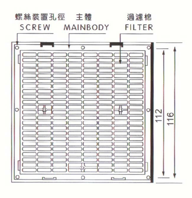 過濾器的塑膠材質為阻燃ABS樹脂,他具有抗紫外線及靜電的優點,過濾網選用進口的尼龍纖維全順民料,除塵率達88%,有效的阻止粉塵進入控制柜內部,而影響電氣原件的使用壽命。